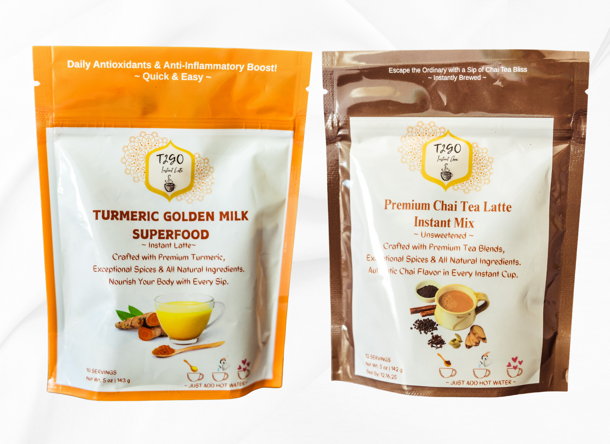 Combo: Turmeric Milk Latte & Unsweetened Chai Latte | Sugar-Free Wellness Pack – T2Go Chai